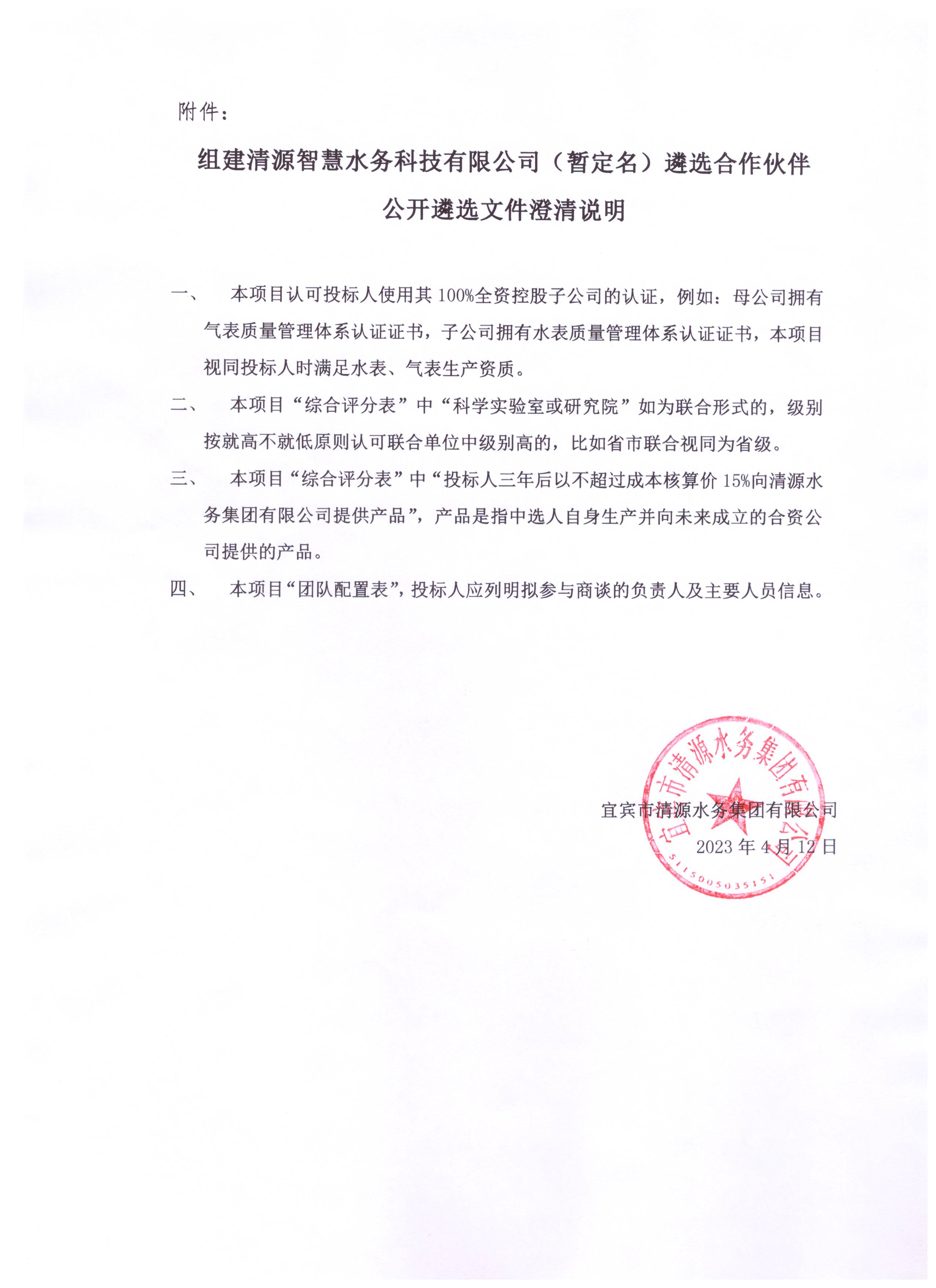 采購(gòu)項(xiàng)目名稱(chēng):組建清源智慧水務(wù)科技有限公司(暫定名)遴選合作伙伴