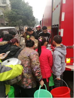 時至中午,錦繡花園小區(qū)內(nèi),一輛消防送水車前排著長隊,聞訊趕來的居民們水桶、水壺齊上陣,載重25噸的消防車放完水后,依然有焦急居民在排隊等候,營銷部工作人員向他們承諾,第二趟很快就送來。隨即,書香府第、利民醫(yī)院、三江廠社區(qū)、陽光名城、葡萄園小區(qū)、紙機廠等多個地點都活躍著送水車的身影,緩解了居民們的燃眉之急。