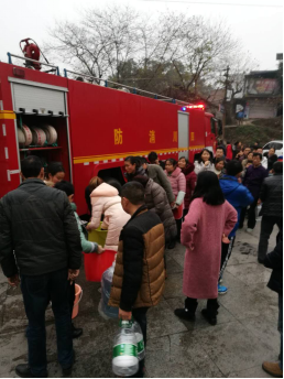 情況緊急,集團公司領導高度重視,迅速啟動應急響應,將停水情況與市消防支隊、翠屏區(qū)環(huán)衛(wèi)部門領導溝通后均得到快速響應,在保證應急搶險和環(huán)衛(wèi)正常作業(yè)的情況下,宜賓市消防支隊安排古塔路中隊、沿江路中隊、臨港大隊、特勤中隊,宜賓市城管局安排宜賓市環(huán)衛(wèi)二所、三所分別出動消防車和灑水車,由營銷部工作人員分成五個小組跟車進行送水。